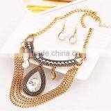 Women Prom Party Rhinestone Crystal Gold Pendant Necklace Earrings Jewelry Sets
