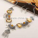 Women Girls Boho Gem Waterdrop Leaf Tassels Drop Necklace Earrings Set Jewelry