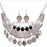 Retro Silver Punk Gypsy Boho Turkish Coin Collar Necklace Earrings Jewelry Set Festival Ethnic Tribal
