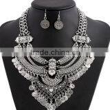 Vintage Flower Carved Hollow New Fashion Statement Bib Collar Pendant Necklace Earrings Set