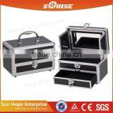 Promotional Cosmetic Station Portable Aluminum Travel Jewelry Case With Multilayer Drawers