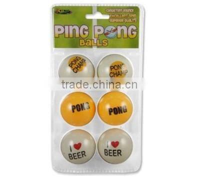 Home > Products > Beer pong game > 1-2 Color Customized Printing Cheap PP or Celluloid Beer Pong Ball Pingping Ball Table Tennis Balls 6pcs pk