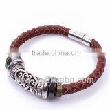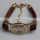 Sya 2014 Fashion Tungsten Steel Stone Alloy Hollow Out Braided Leather Bracelets