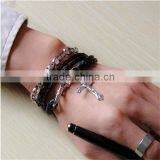 Multi Strand Braid Cross Charms Alloy Leather Love Bracelet