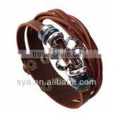 Sya 2014 Fashion Tungsten Steel Stone Alloy Hollow Out Braided Leather Bracelets