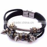 Sya 2014 Fashion Alloy Spike Crystal Leather Bracelets For Men