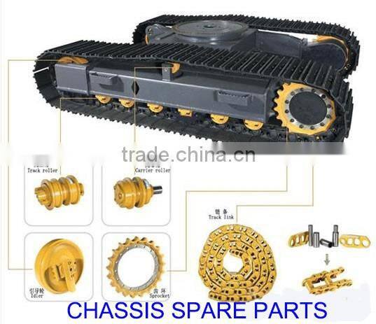4. CHASSIS PARTS:track roller assy, roller assy, idler assy, idler adjust assy, shoe assy, track link assy, bolt, track guide, sprocket.