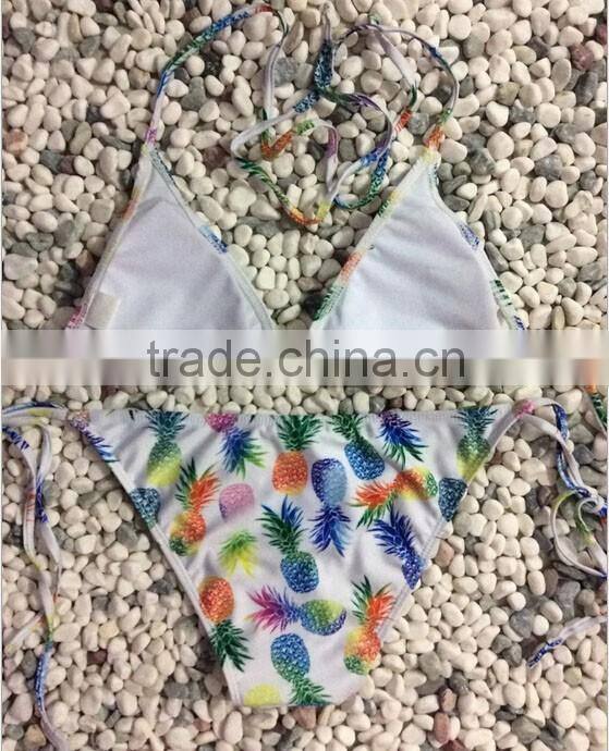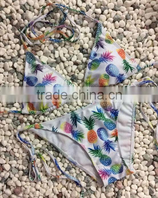 Fluorescence color printed pineapple swimwear brazilian bikini