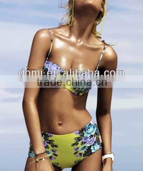 Domi Custom Sunflower Bandeau Top Set Sexy Mature Swimwear Women Bikini