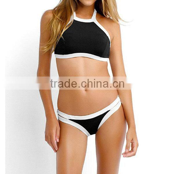Domi White and Black Push up Sexy Bikini Criss Cross Women Swimming Suit
