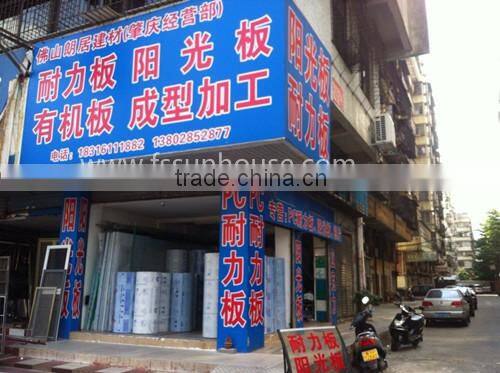 Characteristic:High impact strength,Good transparency, Light weight,Anti-UV treatment,Weather resistance, Sound insulation,Fire proof, Thermoformed and cold bending