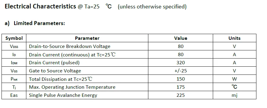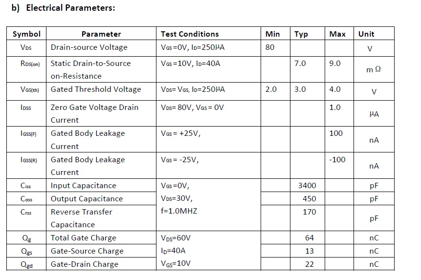 VDS=80V,ID=80A; Rdson≦9.0mΩ @VGS=10V (Typ:7.0mΩ)