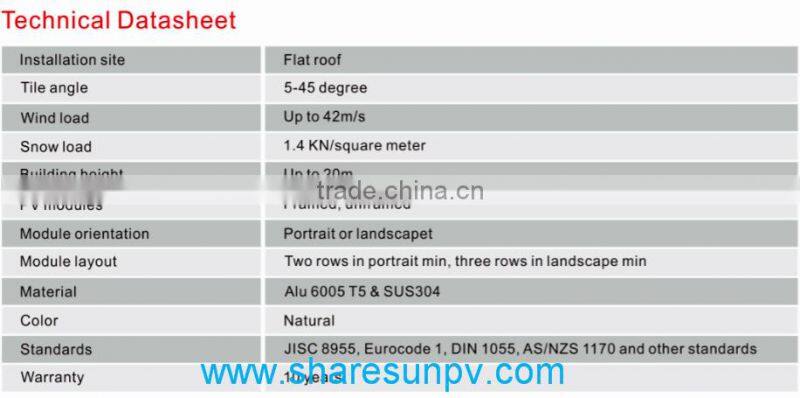| Model Number | solar roof mounting system | Type | Other, solar panel kits for flat roof systems |