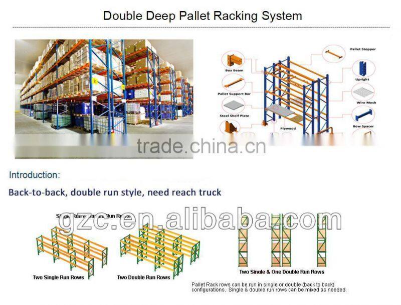 Guangdong Factory 1000-6000kg/layer Heavy Duty Selective Double Deep Pallet Rack