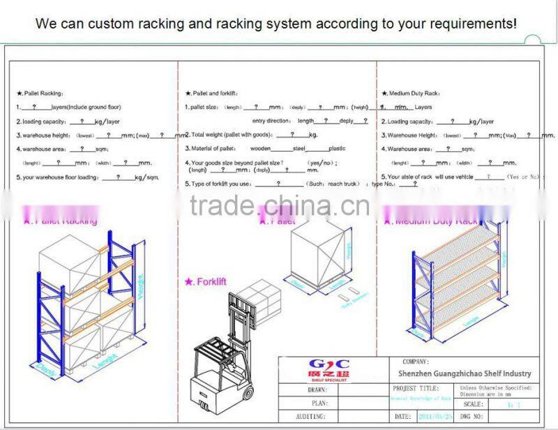You can also offer us a drawing of your warehouse, we can deisign a solution of rack system for free.