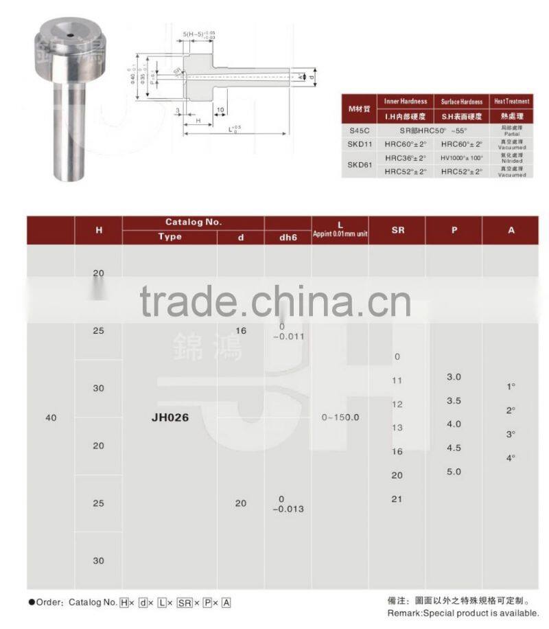 At present,company mainly produce ejector sleeve,ejector pin,flat ejector pin,insert,pen template,sling elector pin,lifter,air poppe,date stamp,wear block,mold base,precision positioning component and all kinds of DME/HASCO/MISUMI standard or special mold component.