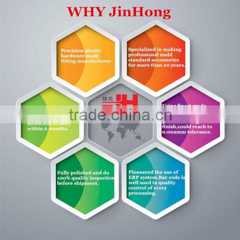 Taizhou Huangyan Jin Hong Mould Parts Co., Ltd. is located in Huangyan city, which is famous "mould hometown" of China mould industry.We are specialized in making various types of precision plastic and die mold components, stamping mold components,precision components machining of mechanical and automatic and so on. Jin Hong has manufacturing base not only in Zhejiang province but also set up factory in Dongguan,Jiangsu,Fujian and Tianjin.We will bringing our customer with higher quality,more efficiently and better after-sales service for best and convenient one-stop service.
