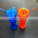 570ml Plastic Straw Cup , Promotional Plastic Cup With Straw