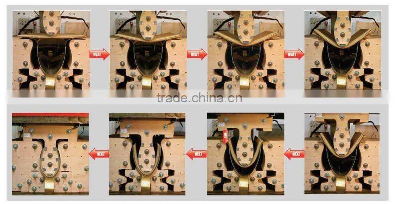 adopt wood mould , suitable for various innovation , one-way, three-way and multi-way hydraulic press combined flexibly , meets different requirements ,one HF gengrator can share myltiple hot press , small working area and low labor intensity ;