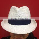 White Woven Paper Straw Hat With Woven Band