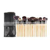 2015 Hot Goat Hair Professional Makeup Brush Set Wood Makeup Brushes 24PCS/Set With Deluxe Leather Bag Black Cosmetic Brush Set
