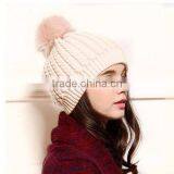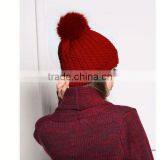 Wholesale Winter Warm Knitted Wool Beanie Hats With Fox Fur Top Ball For Lovely Gilrs