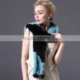 New Product Mixed Color Genuine Long Knitted Rex Rabbit Fur Scarf for Elegant Women