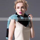 New Design Ladies Fashion Knitted Real Rex Rabbit Fur Scarf Neckerchief in Contrast Color