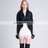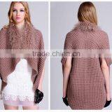 Popular Fashion Ladies Knitted Wool Cape With Mongolian Fur Collar Wool Cape