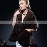 2016/2017 New Style Women Dark Brown Knitted Rabbit Fur Long Vest With Sleeveless