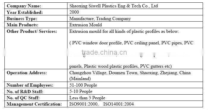 | Shaping Mode | Plastic Extrusion Mould | Product Material | Steel | |
