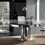 Glass Top Staimless Steel Dining Snack Table