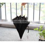Black Lace Straight Umbrella for Lady With Wooden Handle