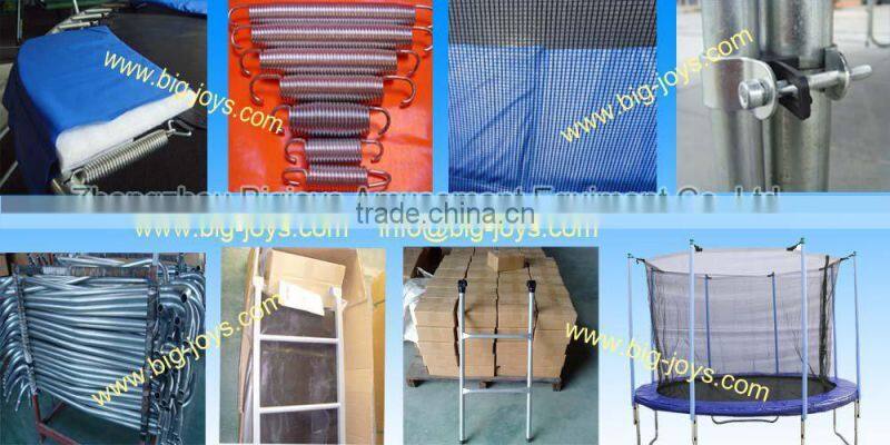 The material we use for trampolines are first-grade to ensure the best quality.Trampoline jumping mat imported from USA,Trampolines tubes are double galvanized for inside and outside. foam safety pad are EPE,Closed-cell foam covered with PVC fabric which will not absorb water,midew or lose shap.trampoline springs are super high-strength chrome plated.all our elements for the trampolines are anti-crack,anti-fade,anti-toxic,anti-UV resistance.
