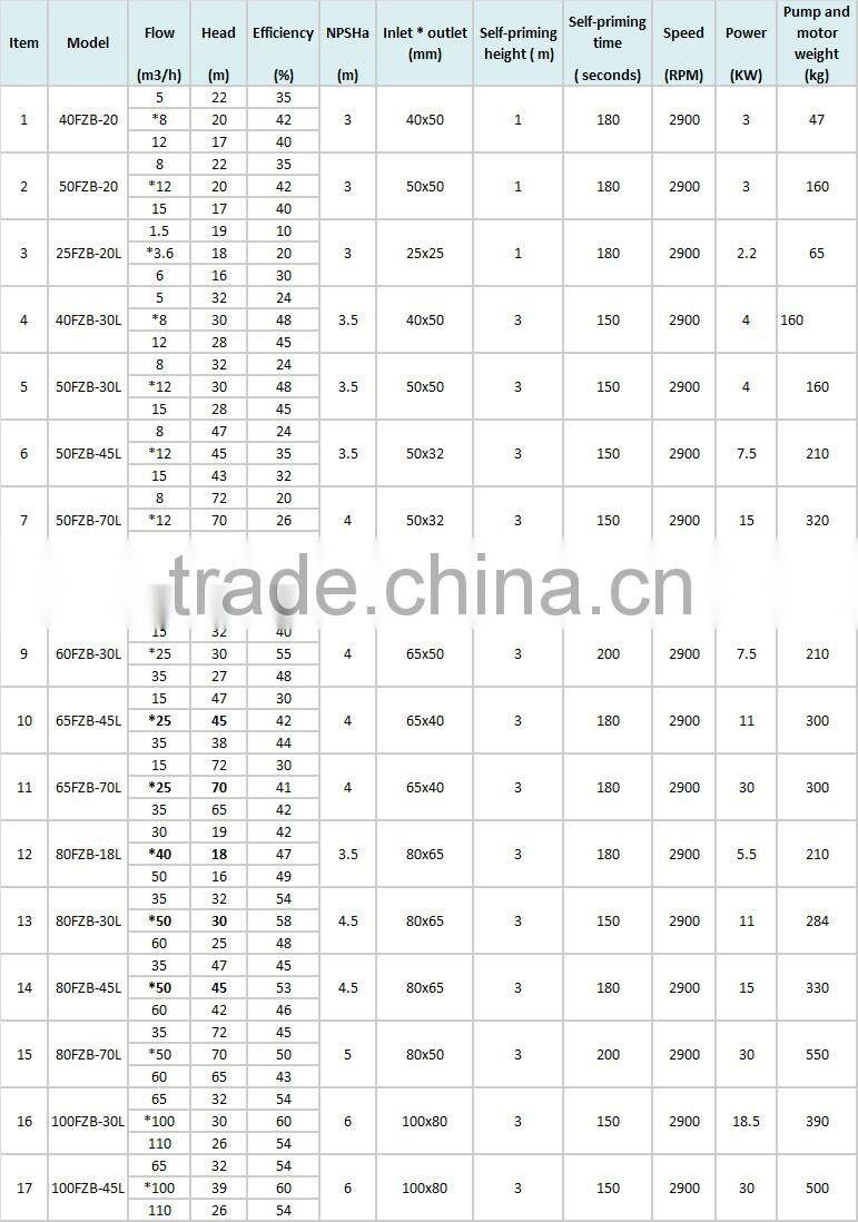 | Model Number | FZB self priming pump | Theory | Centrifugal Pump | |