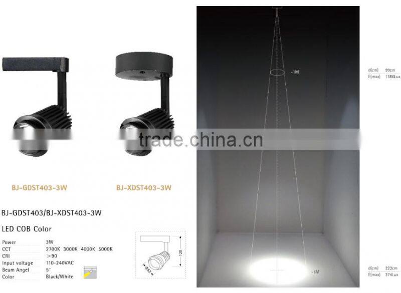 5 Degree 3W Adjustable COB LED Ceiling Light or Track Rail Light for Your Option