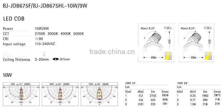 Round Adjustable 9w 10w Led Downlight Cob Chip With Linear Hole