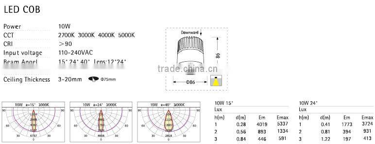 CCC CE RoHS Approved 10w Led Cob Downlight for Star Hotel