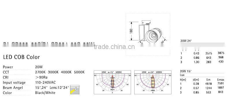 20w White and Black Hot Selling Cob Led Track Spot Light for Commercial Lighting