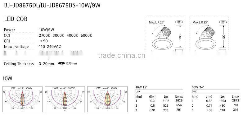 10W Cutout 75mm Adjustable COB 10W LED Downlight in Zhongshan With ce Rohs