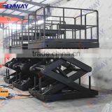 Hydraulic warehouse cargo lift with features of easy operation and efficient work, can raise car from ground to upper floors, it can installed in the pit, do not occupy space. In addition, for this scissor lift platform, many customers use it in production line or docks, so it canbe fixed directly on ground floor.