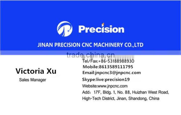 Jinan precision cnc machinery Co.,Ltd is a professional manufacturer of laser machine and CNC router, located in Jinan City, near Qingdao in Shandong Province. We specialize in manufacturing CNC routers, laser engraving/cutting machines, plasma cutting machines and cutting plotters. Our products are widely used in various industries such as arts and crafts processing, advertising, clothing, leather processing, model- and printed-hectograph making, woodworking and stone working. We have established several branches and agents throughout our country. Our products have been exported to more than 80 countries and regions, such as the USA, Germany, the UK, Canada, Australia, Russia and Southeast Asia.We have obtained CE and FDA certifications. We will offer a one-year guarantee for almost all parts. What's more, we can provide considerate after-sales service. Our training and after-sales service system is very perfect. You really have no need to worry about our machine quality and after-sales service when using the machines to put out products. Because of the advanced management and strict rules of the production, there is zero complaint from our customers, and we will continue to consummate our team. High quality is our eternal pursuit. "Customer first, the credibility first" is our consistent pursuit with supreme faith. We have a complete service network and a top-grade service team. Our service ways and means are Omni-directional, multi-level and high-efficiency, which guarantee the effective and reliable responses to customers in the shortest time. By the way, we can also offer technological teaching to operate CNC routers and laser cutting machines if needed. Now, let our products say for us. To know more details, you can go to our website. Hopping we can have a long time and sussessful cooperation in the future!