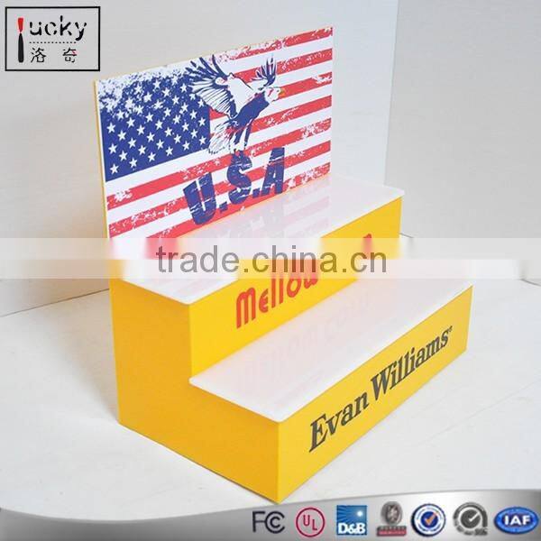 Our Three Step LED lighted bottle display is by far our most popular liquor display. Standing 12.25" high, this display highlights any counter space beautifully! With plenty of room for your entire liquor selection, it's the perfect combination of size and function.