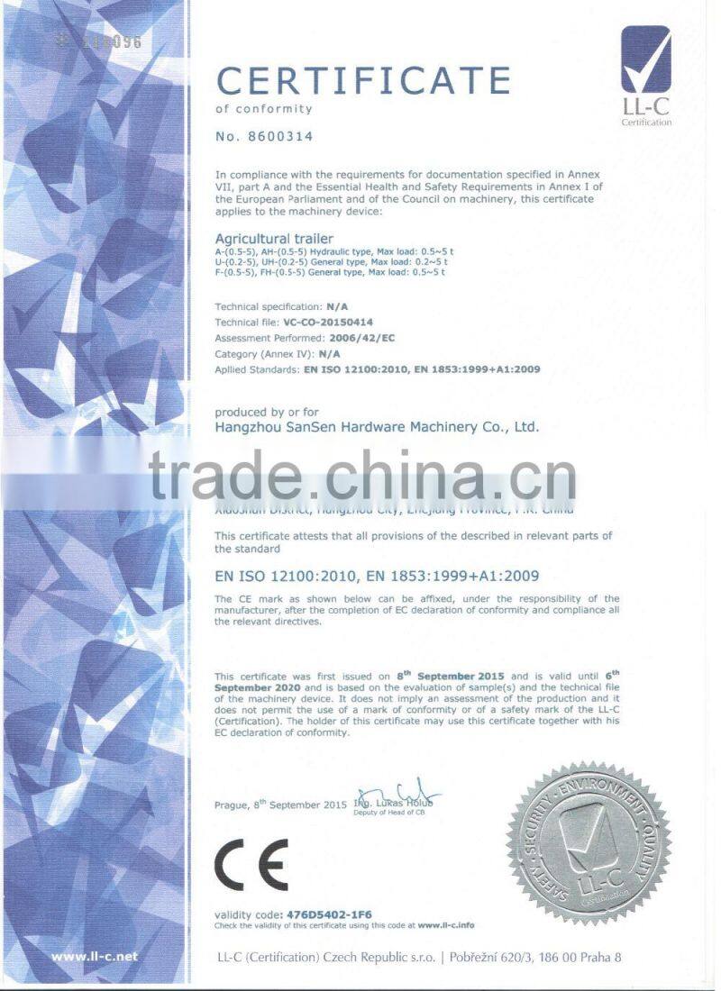 4000kgs Hydraulic Tipping Trailer , Farm Trailer for Tractor