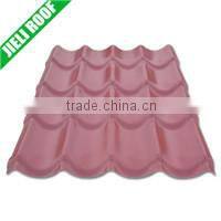 Material of synthetic resin roof tile is PVC and ASA.PVC has the performance of corrosion resistance by itself.And ASA is a kind of super high anti-weathering enigneering resin material which has great performance of anti-uv,with ASA coated,color of roof sheet can last for more than 20 years,and lifetime can 50 years!