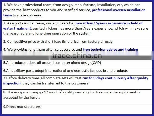 The following technical parameter is the very simple one, please tell us what's the raw water quality and what's the usage of the pure water, we can design the proper technical parameters for you.