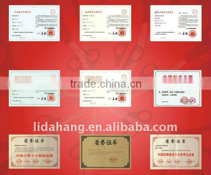 Our company opened the first Lida scissor store in Shenzhen in 1990. In 1999, we established Shenzhen Lidahang Scissors Co. LTD and had a factory covering 10000 square meters. We have four branch companies in Hong Kong, Guangzhou, Humen and Shenzhen. In 2007, we established a sales distribution center in Huizhou covering 4000 square meters. In 2010, we establish Huizhou lidahang hardware company for network sales, providing goods sale, consulting service and custom-made products, With professional salesperson and distribution team, our market covers the whole China, Southeast Asia, Europe and America. Our producing and sales company has the most complete products in China. We produce about 100 kinds of products under the self-owned brand name "Lidahang" and "Yipeng"; they are widely used in garment, shoe manufacturing, bags and leather products, electronics, medicine, hardware and so on. Our products enjoy a good reputation home and abroad and win many national patent certificates. Meanwhile, we learn advanced foreign manufacturing craftsmanship, combined it with traditional craftsmanship and design new products to meet market demand. Our products including: tailoring scissors, thread cutter, leather shear, Embroidery scissors, rubber handle scissors, stationery scissors, stainless steel scissors, household scissors, box cutter, cutter blade, tailoring blade and so on, and now also have kitchen scissors, kitchen knives, travelling scissors and so on. Lidahang is the best choice for you. With perfect design, reasonable price and impeccable after-sale service, we are looking forward to cooperating with you.