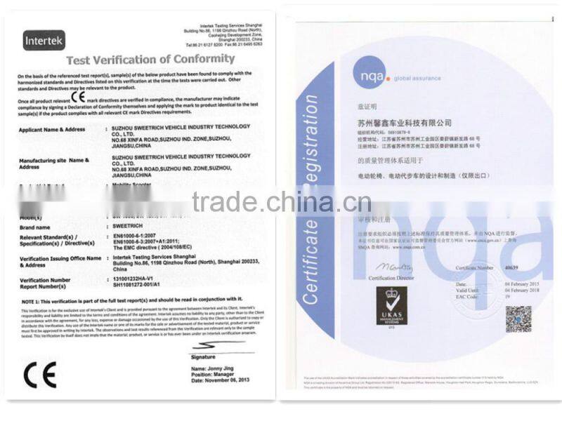 Suzhou Sweetrich Vehicle Industry Technology Co., Ltd established in Suzhou Industry Park located in Jiangsu Province, China in 2007 is a hi-tech based company that has its own brand lines for R&D and production of electric vehicles, for example, electric scooters and power wheelchairs. It has been funded with 50 million investment and covered an area of 60 acres including 30,000 square meters of factory plants.