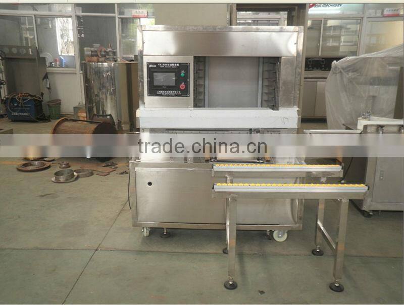 Moon cake automatic forming machine is used for shaping moon cake, the moon cake can be pressed ups and downs through the moulds, then it can turn out to be different shapes of moon cake, It adopts controlling components made by OMROM and the operation is accurate, reliable and adjustable. Moreover, it has unique adjustable unit for green body hand-up and it is the best choice of producing moon cake.