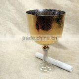 24k Gold Quartz Crystal Singing Grail With Handle and Design
